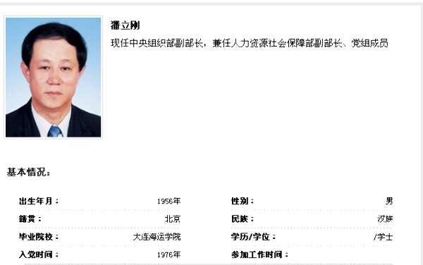 潘立剛,中央組織部副部長(zhǎng),兼任人力資源社會(huì)保障部副部長(zhǎng)、黨組成員。
